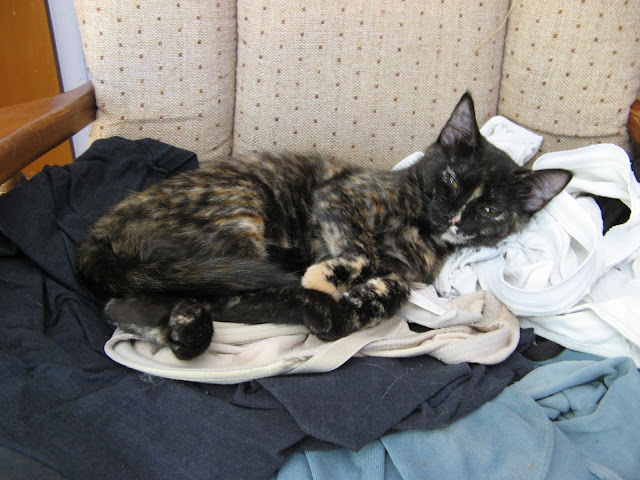 Next cat on the list is Harleen Quinzel, aka Harley. She is a cat that had a troubled life before... when we first got her if there was a loud noise or sudden movement she would jump at least a foot and a half into the air. She is between 4 and 5 years old. Her other nick name is "little girl".